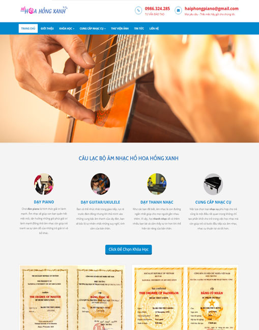 Mẫu website Học Piano được thiết kế chuyên nghiệp.