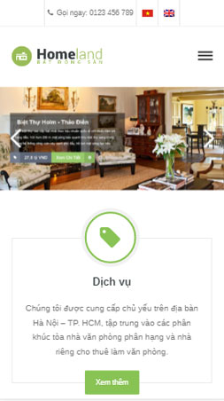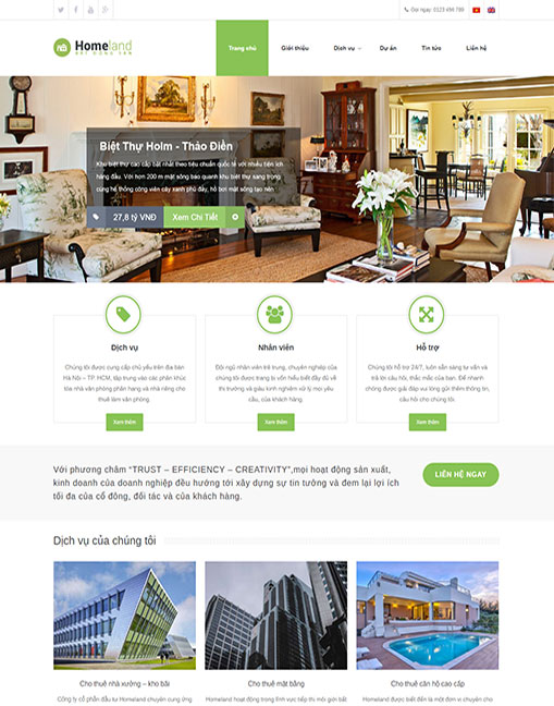 Mẫu website Home Land được thiết kế chuyên nghiệp.
